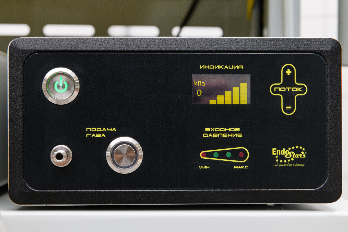 Сегодня прибор совместим со всеми основными типами эндоскопов, баллонами с разъемом D, E или газораспределительной сетью Diss Wall CO. Имеет регулировку скорости потока и подогрева газа, функцию контроля входного/выходного давления и быстродействующую систему ограничения выходного давления.