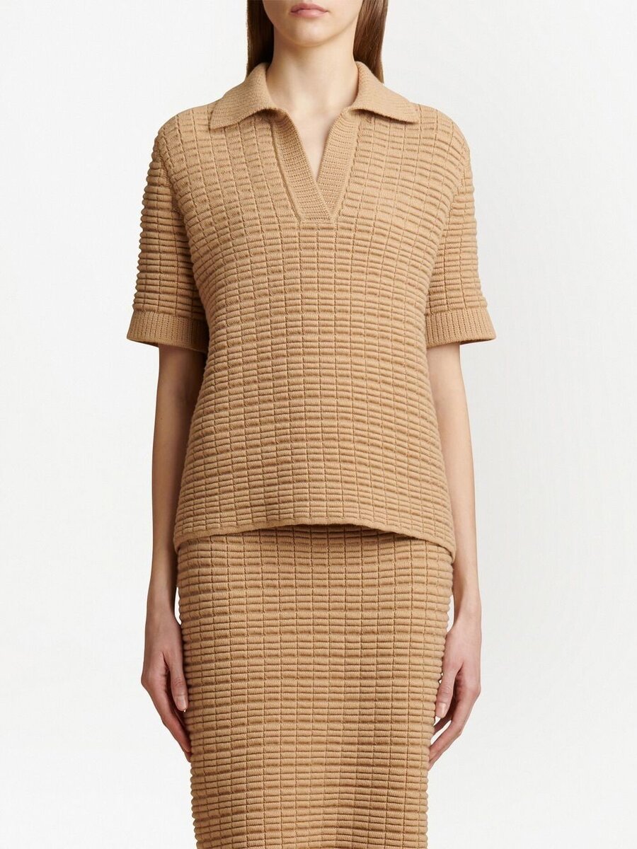 На сайте farfetch нашла такую интересную рубашку с узором валики. В комплект к рубашке идёт юбка карандаш.