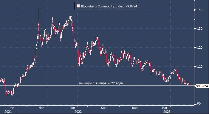 Индекс сырьевых товаров S&P GSCI вырастет на 30,3% в течение года. Инвестбанк Goldman Sachs, который был известен своим бычьим взглядом на рынок сырьевых товаров, заявил, что его прогнозы значительного роста цен в этом году пока не оправдались, но от своего взгляда и ожиданий роста цен в последующем банк не отказывается. «Быки, как и мы, находят утешение в том факте, что спрос конечного потребления во всем сырьевом комплексе не демонстрирует признаков рецессии, а инвестиции в предложение остаются недостаточными», — говорится Джеффри Карри. «Но это не отменяет тот факт, что мы ошиблись в ценовых ожиданиях». Сырьевые товары подешевели в этом году, а индекс сырьевых товаров, рассчитываемый Блумберг, на этой неделе упал почти на 10%, достигнув самого низкого уровня с января 2022 года. Снижение цен на энергоносители и металлы было вызвано в основном более слабым, чем ожидалось, восстановлением Китая после снятия антиковидных ограничений и опасениями, что США сейчас движутся к рецессии после