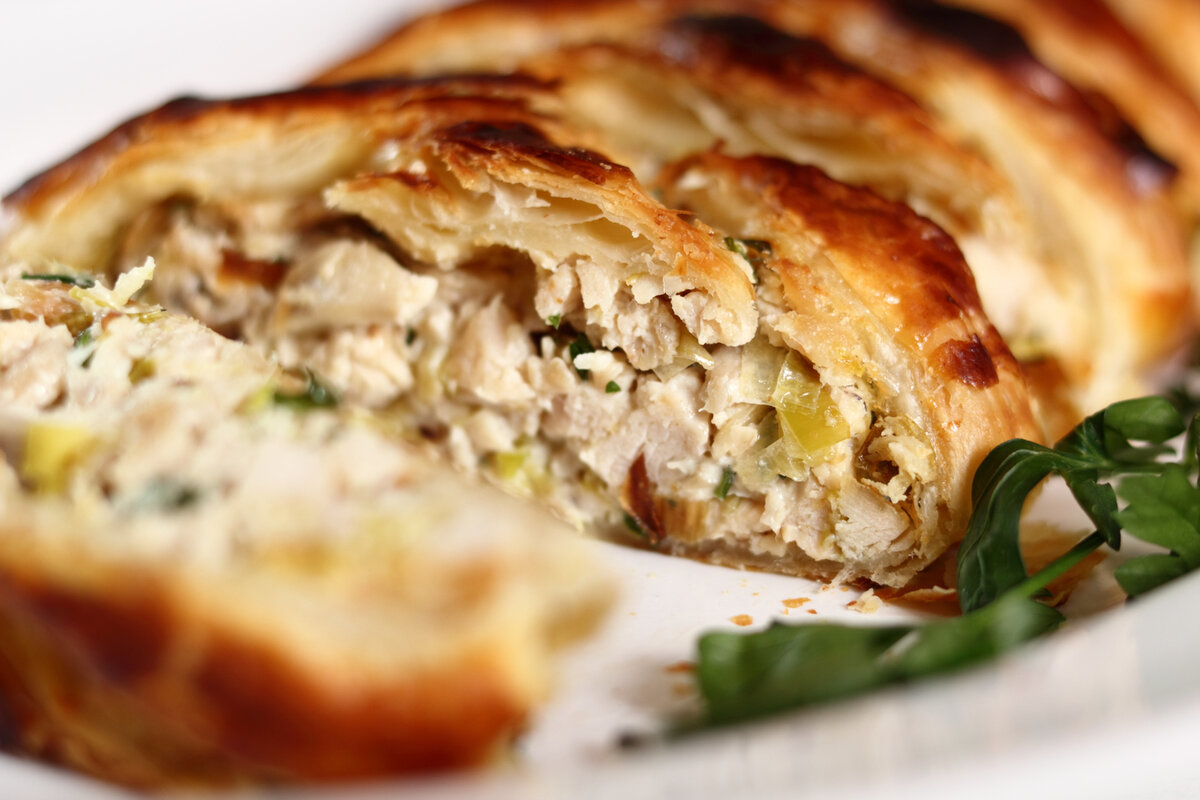 Известный как минимум с XVI века и сохранившийся в своем первозданном виде, курник всегда выделялся на фоне других блюд сразу по нескольким параметрам, и в первую очередь благодаря своим богатырским размерам. Это могучая кучка из мяса, рыбы, каши, яиц, грибов и овощей, разделенных на отдельные слои блинами. И таких слоев, по сохранившимся описаниям, могло быть до 12! Богатый внутренний мир этого пирожка влюбил в себя даже Ивана Грозного: по его распоряжению курники подавали к столу на дипломатических приемах. Высокий статус у курника был и в народе. Его готовили на два знаковых для каждого русского человека праздника: Троицу и свадьбу. В обоих случаях торжества длились несколько дней, поэтому размеры пирога имели и вполне практическое значение. На свадьбу же и вовсе пекли два курника, по одному на жениха и невесту. Родственники жениха украшали свой пирог фигурками из теста, намекая на будущее прибавление в семье, а родня невесты — съедобными цветами, которые символизировали красоту де