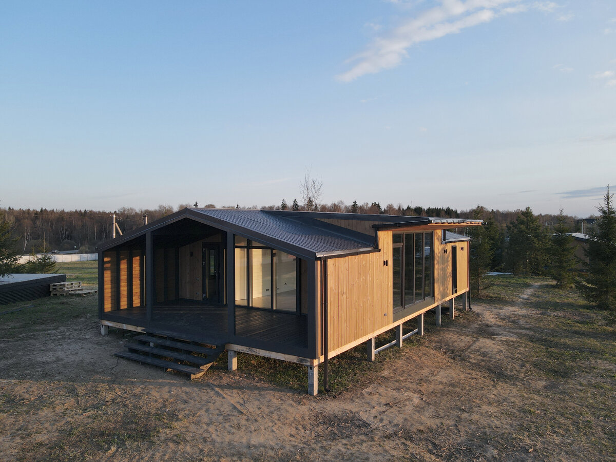 ДВА ДОМА НА ОДНОМ УЧАСТКЕ ДЛЯ ДРУЗЕЙ Дружба крепкая не сломается и не расклеится, если заказывать дома у команды Modul2. Мы проверили, теперь хотим поделиться историей и достижениями. Если у вас есть лучший друг/подруга, наверняка, вы хоть раз представляли, что живете с ними на одном участке, каждый в своем доме. И ходите друг к другу в гости, и дети ваши играют на общей площадке, и салют на праздник вы пускаете ровно посередине. Именно такую задумку решили воплотить в жизнь герои нашей истории - Алексей и Александр. Ребята познакомились еще мальчишками, и спустя 30 лет дружат семьями. А теперь на двоих у них есть большой, равнинный участок под Москвой на берегу живописного озера с одной стороны и лесной полосой с другой. РАСПОЛОЖЕНИЕ ДОМОВ В ЖИВОПИСНОМ МЕСТЕ К нам друзья обратились с необычной задачей - установить два барнхауса 66м² на одном участке и завершить монтаж одновременно. Сложные задачи только укрепляют дух команды Modul2, поэтому приемка домов, конечно, состоялась в один де