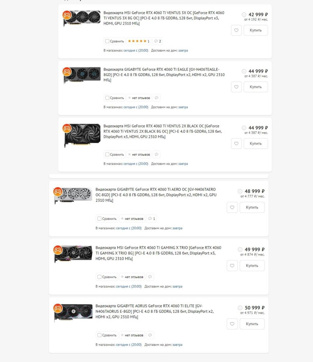 Видеокарты GeForce RTX 4060 Ti продают в России дороже рекомендуемой цены