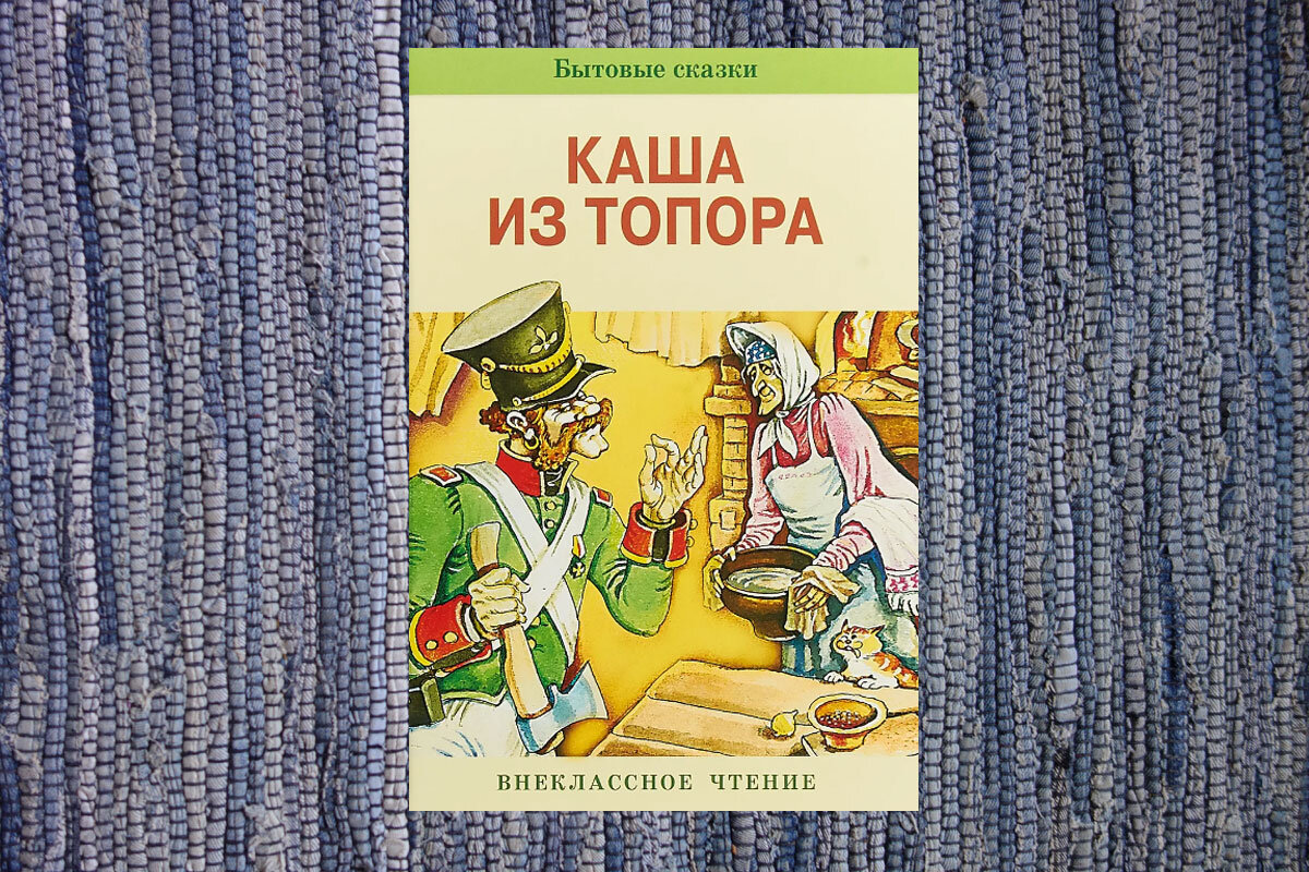 Сказка про предприимчивого солдата, сумевшего добыть у прижимистой хозяйки все необходимое для вкусной каши, пообещав сварить кушанье из топора.