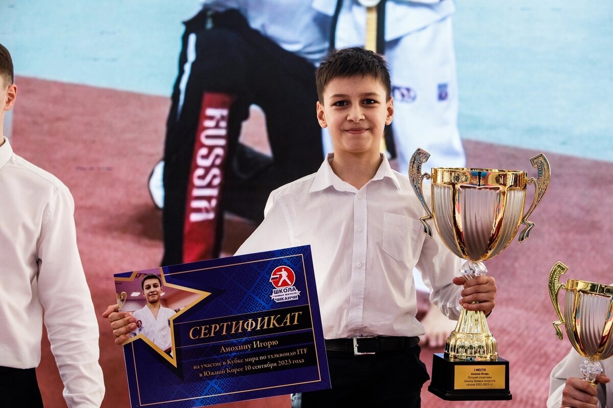 Торжественную часть открыл показательный бой самых перспективных юных тхэквондистов – Артема Зайцева и Евгения Белоголова. Ребятам по 10 лет, в Школе боевых искусств Анатолия Чиканчи они занимаются с четырех. Комментировали поединок тренеры школы Андрей Кетов и Илья Томилов. В результате равноценного соперничества победу вырвал Артем Зайцев. Спортсменов наградили памятными кубками и денежными призами.