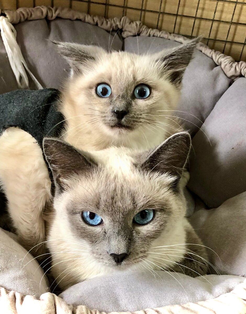 Кажется именно такой разговор происходит между ними, каждый раз когда мы их пытались пристроить по отдельности. Мама и дочка никак не могут расстаться и теперь мы пристраиваем такой голцбоглазенький комплектик 💙 Каждый раз когда находился дом для кого-то из них одной, вторая заболевала и так по кругу, каждый раз одно и тоже, они не могут друг без друга такой вывод напрашивается в голову, нет, это не совпадение, это действительно так 😔🙏 они все делают вместе, у них большая и крепкая любовь и не отпускают друг друга даже взглядом. Мы понимаем, что найти один дом сразу для двоих - это практически невозможно, но мы верим и будем верить до конца. Девочки были спасены с подвала и неразлучные совсем ещё со времен улицы. Мы верим, что найдётся человек который захочет приобрести двойную порцию красоты и любви 💘 Леля очень скромная девочка и без мамы рядом она не может даже открыться, а рядом с мамочкой она полностью копирует настроение мамы и становится ласковой и нежной кошечкой, обе прош