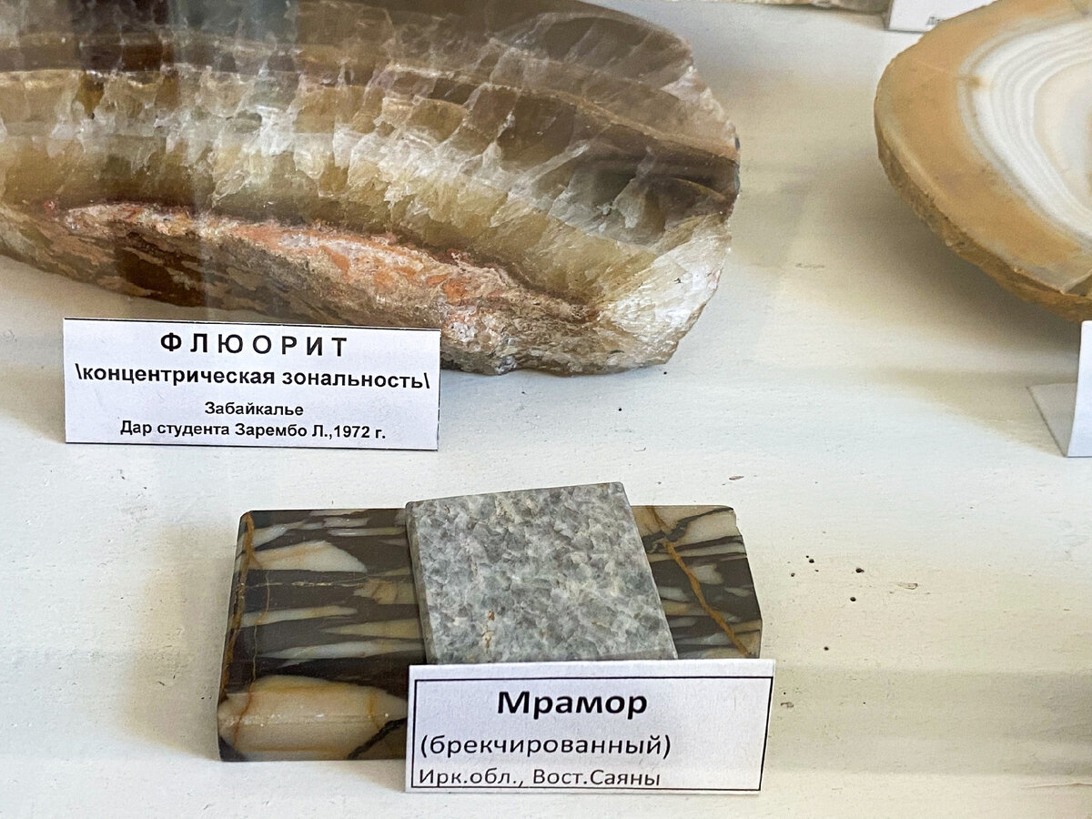 Геолог – это не профессия. Это состояние души. Именно такие люди обучаются на геологическом факультете ИГУ и имеют возможность посещать геологический музей, в котором хранится множество образов камней первозданного вида. –Без геологического музея не может существовать факультет геологов. Основа университета – это наши образцы, – говорит Светлана Липина, заведующая учебно-научным геологическим музеем, старший преподаватель ИГУ. Один из таких образцов – мрамор. Мрамором называют разновидность горной породы, появившейся в ходе изменения кристаллов доломита и известняка. В Иркутской области месторождение мрамора расположено в километре от города Слюдянка и разрабатывается с 1972 года. Мрамор – это природный материал, который имеет минимум недостатков. Этот камень имеет высокую водонепроницаемость и термостойкость. Является экологически безопасным материалом с чрезмерной долговечностью. Мрамор бывает белого, чёрного, зелёного, красного, розового, голубого, жёлтого и бежевого цвета. Применя