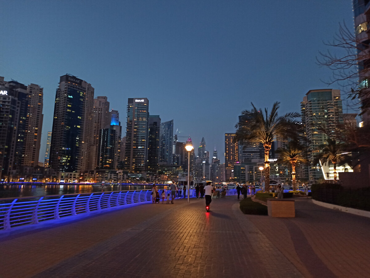 Вечером Дубай Марина становится ещё притягательней,зажигается подсветка на высотках,а она такая красивая и разная,синяя,красная,зелёная-очень красиво смотрится! В ресторанчиках звучит музыка,а роскошные яхты приглашают на водную прогулку! Спадает жара и гулять становится очень комфортно!Прогуляемся вместе?))