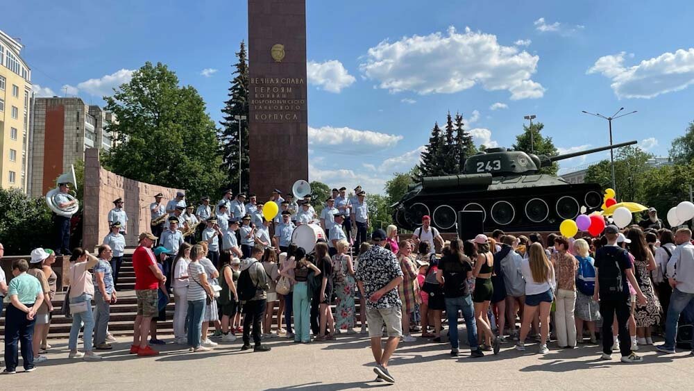 В центре Перми прошли съемки массовой сцены фильма «Культурная комедия». Утром 25 мая съемочная группа развернулась на площади у Мемориала добровольческому танковому корпусу на улице Сибирской. В съемках приняли участие главные герои фильма и Пермский губернский оркестр. Сняться в массовой сцене также приглашали всех желающих. «Культурная комедия» - это история об алчном чиновнике, который решает сколотить состояние на сфере культуры. Главные роли в проекте исполняют Алексей Чадов и Яна Гладких. Режиссером картины выступает Владимир Котт. Фото: Пермский губернский оркестр