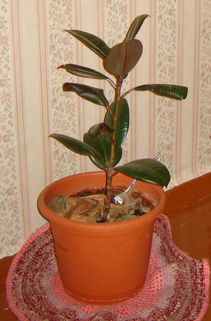 Когда мы 20 лет назад (ну почти - летом 2003-го) переезжали в свою первую квартиру, однушку, нам подарили фикус. Он рос, ветвился, переехал с нами в двушку, дружил с котом (в смысле кот его не жрал)). Это 2006 год, лето. За три года он добавил листиков 7 - окна были на юг, ему было слишком много света. Это 2008 год, март. Окна на восток понравились, начал ветвится. Это январь 2009-го, мы купили ему самый большой горшок, что нашли тогда. В 2009-м, мы начали ремонт, да такой, что пришлось временно переезжать. Мы отдали фикус моей маме. Мама его почему-то рассадила - получилось разделить его на три части, две пристроила, один росток остался у нее. Росток вырос в нечто невразумительное - длинная палка, на ней листья. В 2016-м мама умерла, фикус мы забрали. Когда мы его перевозили, он не вмещался в наш седан и весело махал листьями из окна). Вот приверно таким он опять попал к нам - тут он уже прибавил в росте и начал ветвиться. Почти сразу мы сменили ему горшок и тут он КАК ЛОМАНУЛСЯ в рос