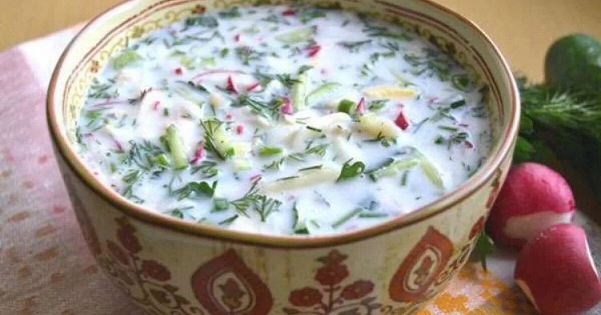 Ингредиенты: - 1 кг квашеной капусты - 5-6 картофелин - 3-4 яйца - 1 огурец - 1 луковица - 200 грамм ветчины - 2-3 зубчика чеснока - 1 литр кефира или йогурта - 2 столовые ложки сметаны - зелень по вкусу - соль и перец по вкусу Приготовление: 1. Картофель сварить в мундире до готовности, остудить и нарезать средними кубиками. 2. Яйца сварить вкрутую, остудить, очистить и нарезать кубиками. 3. Огурец нарезать мелкими кубиками. 4. Лук мелко нарезать. 5. Ветчину нарезать кубиками. 6. Квашеную капусту нарезать тонкой соломкой. 7. Смешать все нарезанные ингредиенты в большой миске. 8. Чеснок измельчить и добавить в миску. 9. Добавить кефир или йогурт и хорошо перемешать. 10. Добавить сметану и зелень по вкусу. 11. Соль и перец добавить по вкусу. 12. Охладить в холодильнике до готовности и подавать. Приятного аппетита!