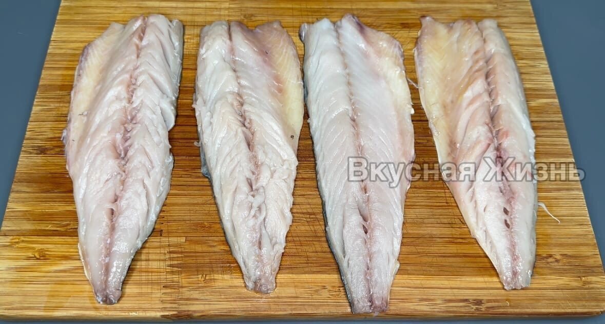 Добро пожаловать на канал "Вкусная Жизнь"! Рада приветствовать своих постоянных читателей и всех, кто заглянул ко мне впервые! Скумбрия может удивить! Пожалуй это самый лучший рецепт скумбрии в духовке. Ингредиенты: 1. Скумбрия - 2 шт. 2. Соевый соус - 3 ст. ложки. 3. Растительное масло - 2 ст. ложки. 4. Мёд - 1 ч. ложка. 5. Лимонный сок - 2 ст. ложки. 6. Чёрный молотый перец - по вкусу. 7. Чеснок - 2 зубчика. Способ приготовления: 1. Скумбрию разделываем на филе и вынимаем все кости. 2. Затем каждое филе разрезаем вдоль пополам. 3. Готовим маринад. Для этого смешиваем 3 ст. ложки соевого соуса, 2 ст. ложки растительного масла, 2 ст. ложки лимонного сока, 1 ч. ложка мёда, 2 измельчённых зубчика чеснока, чёрный молотый перец по вкусу и тщательно перемешиваем. 4. Рыбы перекладываем на большую плоскую тарелку и с двух сторон поливаем подготовленным маринадом. Если у вас есть время, то лучше всего промариновать скумбрию примерно 20 минут. 5. Закручиваем 4 кусочка скумбрии в нахлест, чтобы