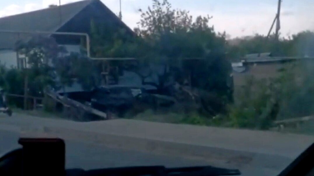 В Липецке БМВ ударил автобус, пробил забор и залетел в огород частного дома