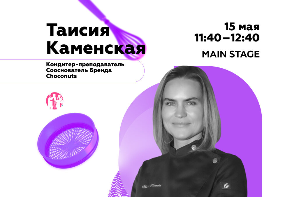 Как раз о них расскажет Таисия Каменская, кондитер-преподаватель, со-основатель бренда Choconuts, 15 мая в 11:40-12:40 на площадке MAIN STAGE. Таисия выступит с темой «Моти — главный тренд этого года. Разбираемся в секретах приготовления».