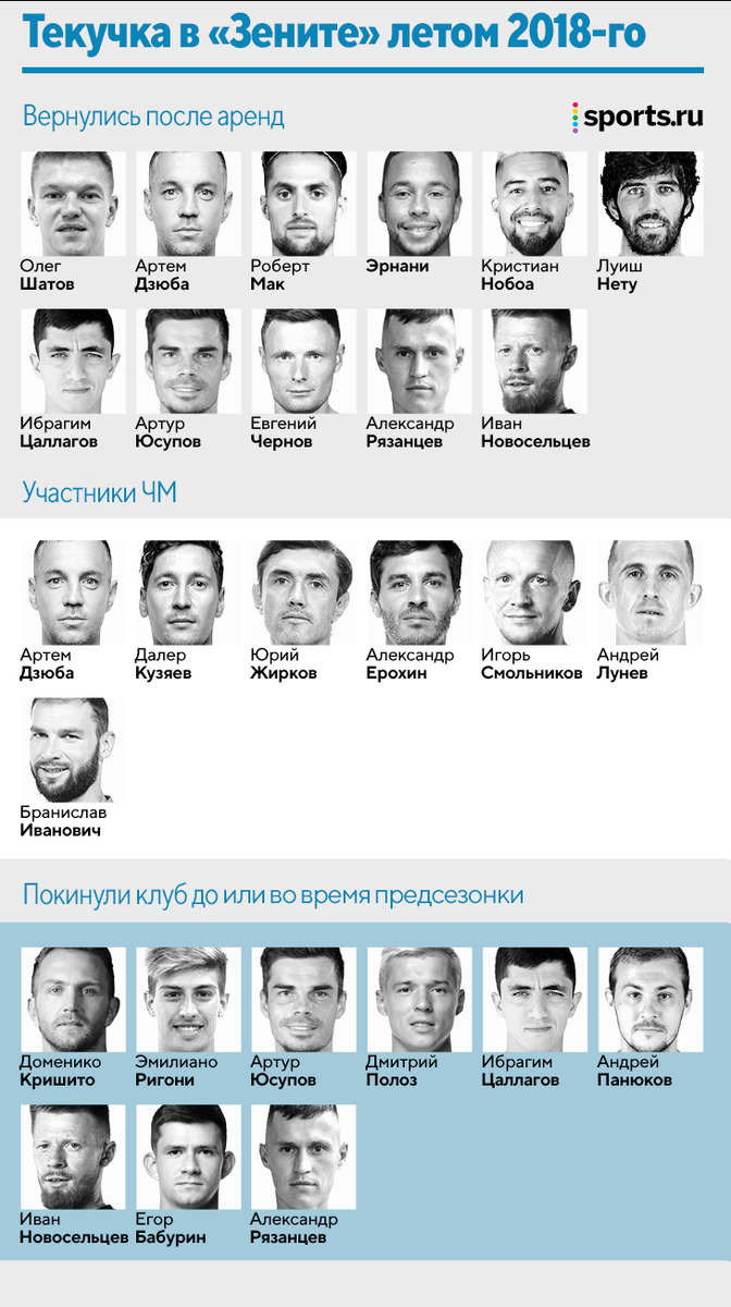 Летом 2018-го Семак разбирался с наследием Мирчи Луческу и Роберто Манчини – из аренд вернулись одиннадцать игроков. К тому же большая часть основы не прошла полноценную предсезонку из-за ЧМ, несколько важных игроков вылетели из-за травм (Кокорин, Жирков, Ерохин, Маммана), а на левом фланге обороны образовалась дыра после ухода Кришито. До начала сентября 2018-го «Зенит» никого не подписывал.