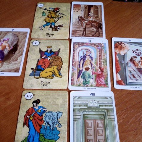 Львам в расклад привалило много старших арканов. По всей видимости, эта неделя станет для вас важной. А события, в которые вовлечет судьба, будут еще долго отзываться эхом. Начало недели Карта на позицию – Семерка жезлов Понедельник будет нелегким, и потребует от вас не только силы, но и мужества. Вы будете двигаться вперед, но очень медленно, преодолевая трудности. Кто-то изо Львов займется творчеством, кто-то повышением профессиональных навыков. В этот день могут быть удачными торговые сделки и деловые переговоры. А кому-то придется вступить в полемику и даже стать объектом сплетен. Дела, работа, бизнес Основная карта – старший аркан Шут Дополняющая – Рыцарь жезлов Не зря карту Шута имеют еще Безумцем и Дураком. Именно такой подход на этой неделе у Львов будет ко всем делам. Если вы и станете предпринимать какие-то действия, они окажутся бездумными. Вы как будто блуждаете в потемках, не понимая, чего от вас хотят. И что самое интересное, данная ситуация вас не напрягает – вы спокойно