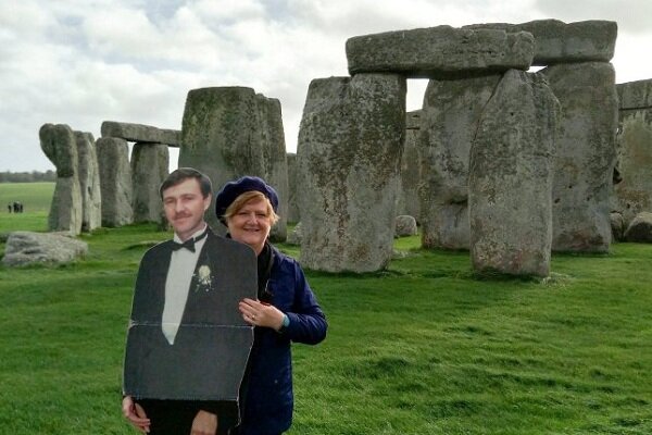 Вдова путешествует по миру с картонным образом своего покойного мужа
