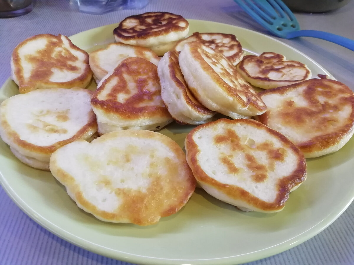 При упоминании этого блюда у меня перед глазами встают оладьи из детского сада, пышные, большие, красивые. Практически, как пирожки по размеру. Очень вкусные. Во взрослом возрасте пробовала разные рецепты, на кефире, с минералкой и прочее, вкусно, но или не такие пышные или просто "не такие". Оладьи по этому рецепту получаются именно как в детском саду, но требуют времени на свое приготовление. Состав: Приготовление: Всё в этих оладьях хорошо, вот только "подождать 10 минут", "подождать 30 минут". Это насколько раньше надо встать, чтобы накормить семью свежими оладушками на завтрак. Думала, что нашла выход. Ставила тесто вечером, на ночь убирала в холодильник, а утром готовила. Но в этом случае надо, чтобы ёмкость с тестом была с запасом. Вчера немного недооценила тесто, утром обнаружила убежавшее и 2 полки в тесте... А у вас есть любимый рецепт оладушек? Подписывайтесь на мой канал, будет ещё много интересного.