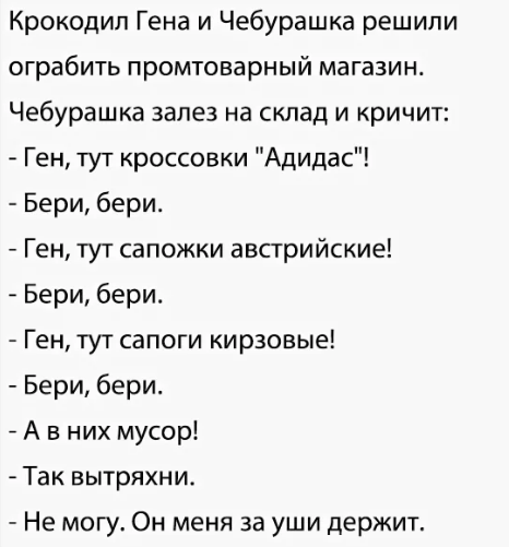 Анекдоты про гену и чебурашку