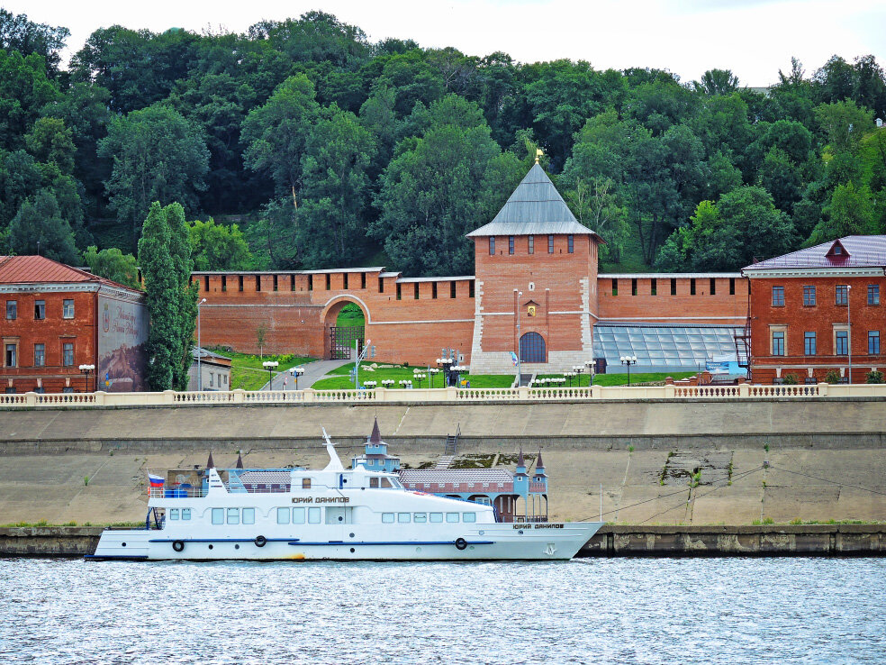Продолжаю рассказ о моём путешествии по Волге в 2015 году. Начало с общей информацией - по ссылке ниже. В кадре - 18 июля 2015 года. Мы знакомимся с Нижним Новгородом и отправляемся на речную прогулку, чтобы посмотреть на город с реки. Я искал особый маршрут - с заходом в Оку. Не знаю, как сейчас с такими маршрутами, а тогда я нашёл его с трудом. Основная масса теплоходов ходила только по Волге. Отправление происходило с причала около памятника «Катер «Герой». Сейчас, насколько я знаю, здесь швартуются круизные теплоходы, скорее всего, если такие рейсы и есть, то начинаются они где-то в другом месте. От радости, что нашёл то, что искал, не запечатлел ни причал, ни теплоход. Поэтому сразу начинаем осмотр набережной. Мы движемся вверх по Волге в сторону стрелки рек и к устью Оки. Первая достопримечательность на нашем пути - Зачатьевская башня кремля. Самая нижняя. Этот участок стены - самый нестабильный, долгое время был просто разрушен. Башню и часть стены восстановили в 2012 году. Изда