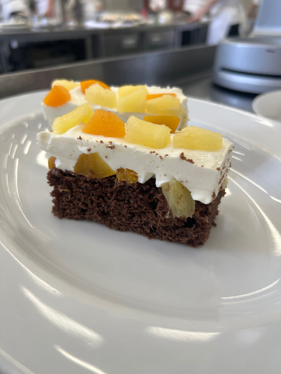Всем привет дорогие друзья, сегодня я расскажу вам про очень нежное, сочное и невероятно сбалансированное блюдо. Йогурт-шоко, это десерт на основе венского бисквита и йогуртовой начинки. Пойдем по порядку. Бисквит создается путем смешивания взбитых с сахаром желтков и белков, далее просеивания в эту красоту сухих ингредиентов, таких как мука, какао, соль и разрыхлитель, вкус бисквита очень насыщенный и в меру сочный, текстура нежная и мягкая, очень важно после того как испекли бисквит его пропитать обычным сиропом на основе воды и сахара, можно добавить ликер (по желанию). Фишка крема, в его исключительном балансе, он не слишком сладкий. Йогурт и вино гасит излишнюю сладость с одной стороны, а мед и сахар балансируют сладость с другой. Если вам понравилось это блюдо, пишите комменты, ставьте лайки и я выложу к не у рецепт со всеми подробностями, до скорых встреч!