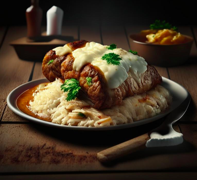 Шашлык из свинины - это классическое блюдо для пикника или вечеринки на открытом воздухе. Сочное мясо с легким ароматом дыма и ароматными специями обязательно понравится вашим гостям. А с картофельным пюре в качестве гарнира, этот шашлык станет полным и сытным блюдом. Ингредиенты: Шаг 1: Нарежьте свиную шею на куски размером 3-4 см и выложите в большую миску. Шаг 2: Приготовьте маринад. Для этого смешайте оливковое масло, тмин, кумин, паприку, розмарин и тимьян в миске. Добавьте щепотку соли и перца по вкусу. Тщательно перемешайте все ингредиенты. Шаг 3: Нарежьте лук на кольца и добавьте его к мясу в миске. Влейте маринад на мясо и лук и тщательно перемешайте. Накройте миску пленкой и оставьте в холодильнике на 2-3 часа. Шаг 4: Предварительно разогрейте гриль или мангал до средней температуры. Шаг 5: Нанизывайте мясо на шампуры или просто выложите на гриль и обжаривайте 10-15 минут с каждой стороны до готовности. Шаг 6: Пока готовится шашлык, готовьте картофельное пюре. Для этого очист