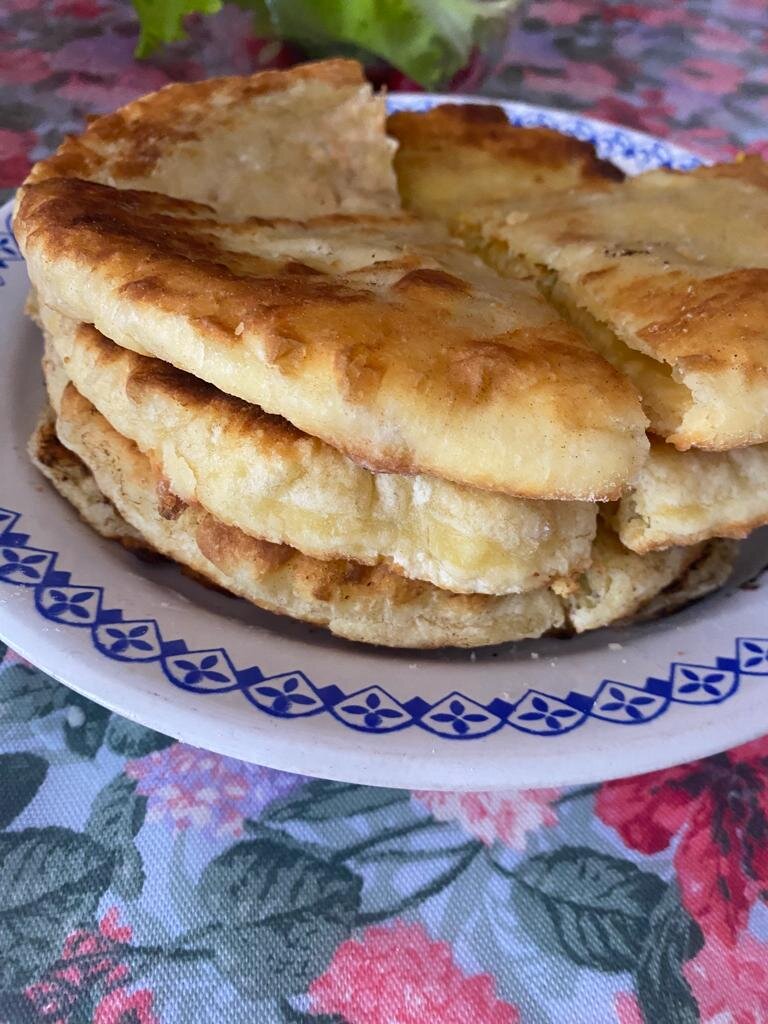 Так быстро и так непревзойденно вкусно готовила хачапури моя мама. Вкус детства. Продукты: Хачапури делаем на кефире. Замешиваем тесто. В кефир засыпаем соду и хорошо размешиваем до полного растворения, чтобы кефир забурлил. Затем разбиваем одно яйцо и снова перемешиваем, добавляем масло и постепенно, просеянную муку, до загустения. Выкладываем тесто на стол, и делим его на четыре части. Скатываем в шарики и оставляем на столе. Накрываем пленкой или салфеткой. Тесто мягкое, воздушное, липнет к рукам, но на столе его присыпаем мукой. В это время готовим начинку. Натираем на терке сыр и добавляем к нему яйцо, черный перец. Хорошо перемешиваем. (У меня нити сулугуни со специями. Они соленые, поэтому добавила простой сыр. Лучше когда идет один сулугуни, можно с брынзой). Разделяем начинку тоже на четыре части. Берем один шарик и руками разминаем его в лепешку, кладем начинку, и закрываем как пирожок. Переворачиваем и снова руками разминаем в лепешку. Можно раскатать скалкой, но руками