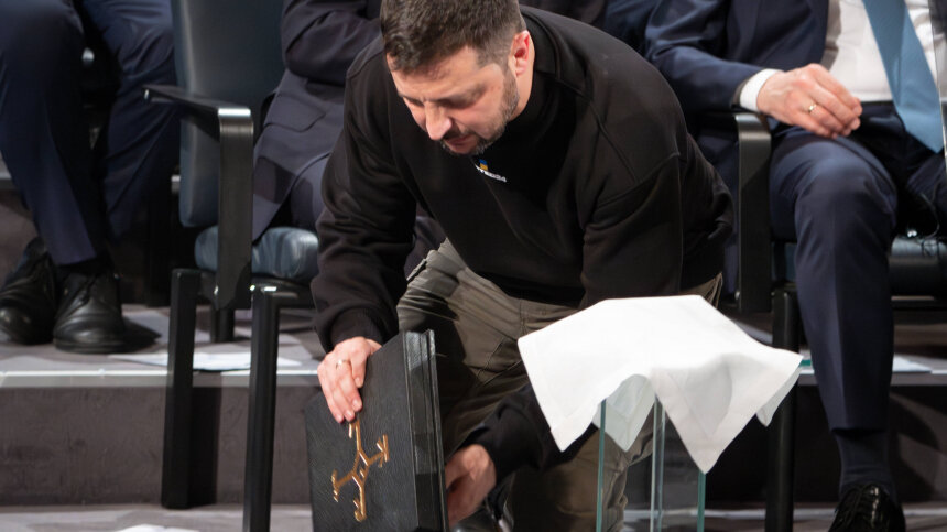 Зеленский обвинил русских в падении полученной им премии Карла Великого на пол