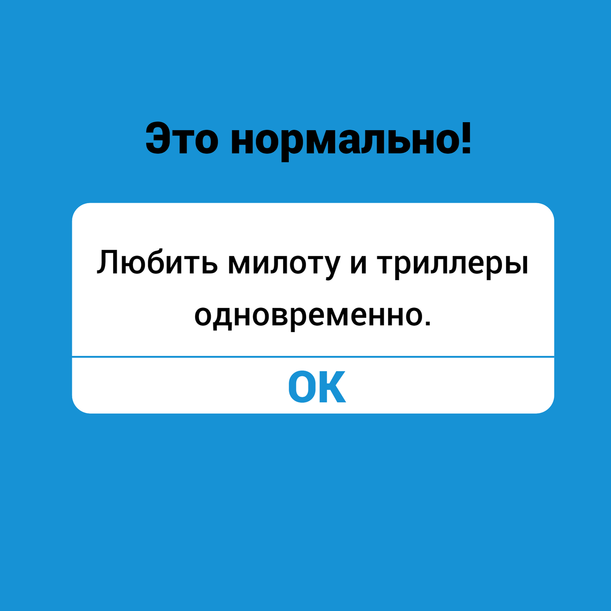 Мы все разные, и это прекрасно! Из особенностей складывается индивидуальность, и нет ничего странного в том что вы любите и триллеры, и романтику, например. Решила напомнить вам, какие ещё черты книголюбов — совсем не повод переживать. Забирайте свое и жмите "ОК". Надеюсь нашли напоминание, которое подходит именно вам. Если есть еще какие-то на ваш взгляд, то пишите о них в комментариях.