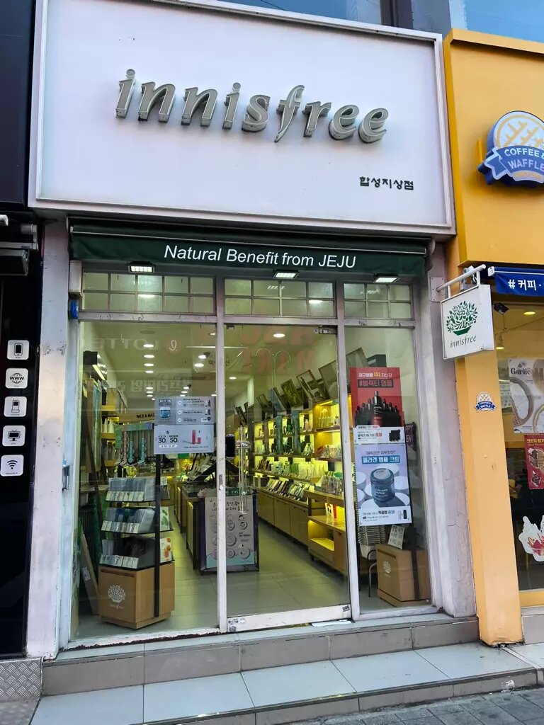 Друзья, приветствую Вас) Сегодня покажу Вам как выглядит внутри магазин моей любимой косметики Innisfree (Не является рекламой. Никто за это мне не платит). Это первый корейский бренд, который делает акцент исключительно на натуральных и органических ингредиентах в косметике, и создаёт косметические средства без искусственных и синтетических составляющих. Родиной Innisfree является остров Чеджу-до, который находится под охраной всемирного наследия ЮНЕСКО. Здесь находится потухший вулкан, благодаря которому все добываемые компоненты насыщены уникальным количеством минералов и витаминов. Среди таких ингредиентов: вулканический пепел, целебная грязь и глина, фруктовые и растительные экстракты. Для меня это рай🥰. Косметики много не бывает). Вещи я не любитель покупать, а вот косметику🤤. Здесь я писала о глиняной маске данной фирмы.