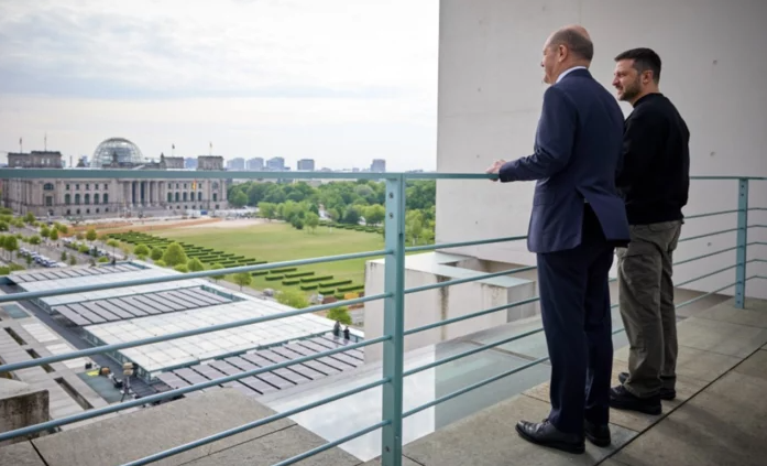 Президент Украины Владимир Зеленский на совместном брифинге с канцлером Германии Олафом Шольцом прокомментировал оставшиеся необходимые поставки вооружения для проведения контрнаступления. Он сказал, что «ещё пару визитов и всё», имея в виду свой марш-бросок со служебными визитами в европейские страны, которые либо обещают дать украинцам оружие, либо уже дали. На фоне этого Олаф Шольц подтвердил пакет военной помощи на общую сумму 2,7 миллиардов евро, который будет предоставлен украинской армии. Зеленский поблагодарил немецкого канцлера, сообщив, что Германия является второй страной по поставкам после Соединённых Штатов Америки, но он сделает всё, чтобы немцы стали первыми в этом списке. Известно, что Германия зарезервировала более 11 миллиардов евро на этот и последующие годы, чтобы продолжить военную поддержку украинской безопасности. Шольц отметил, что надеется на быстрое завершение конфликта из-за предоставленного современного оружия, но европейцы готовы и к долгосрочному сценарию,