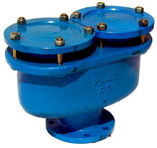 Вантуз с диаметром условного прохода 100 мм. Предназначен для автоматического удаления воздуха из наивысших точек работающего трубопровода, а также для автоматического впуска воздуха в водопроводную сеть при образовании в ней вакуума, в системах холодного водоснабжения при давлении до 1,0 МПа (10 кгс/см²) и при температуре от 5 до 50°С.