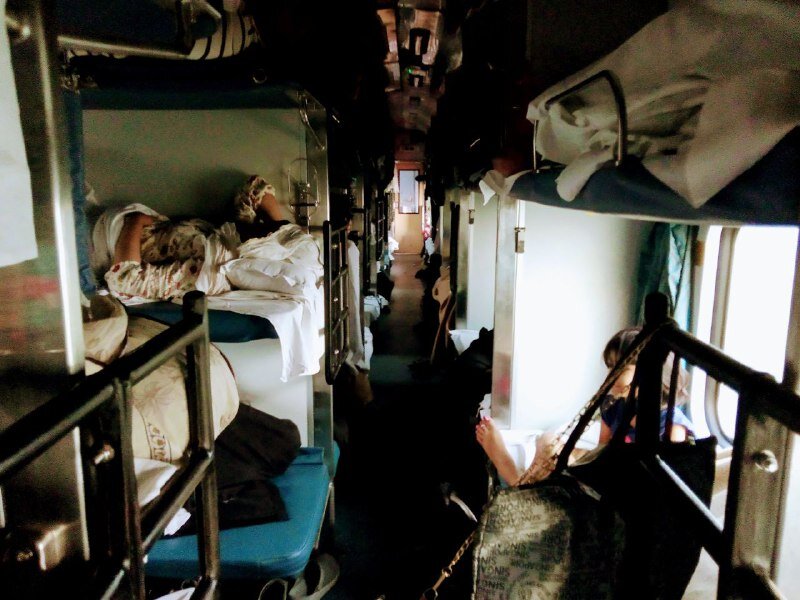 Поезд “три ай си” значит, что плацкартных полок будет не две, а три. Плюс багажная. Такой скелет кита изнутри. Если средние решили спать, то нижним уже не сесть - средняя полка опускается. Из-за этого подступает клаустрофобия. Хорошо, мое место оказалось сбоку, там, как у нас, полки две. Поезд до Бенареса был заполнен полностью. Из-за того, что спальных мест больше на той же площади, больше и людей. Ехали семьями, гул голосов не стихал. Я подумала: у нас как правило едут одиночки, незнакомцы, поэтому в поезде чаще тихо. Напротив меня красивая полная дочь ругалась с пожилым отцом. Папа выбросил из дорожной сумки ее шампунь, банные принадлежности. «Дак ведь я думал это мусор», - оправдывался отец. «Ты всегда думаешь, что мое - это мусор», - говорила красавица. Ее овальное, как у отца, лицо было строгим и тревожным. Она звонила домой и заставляла тех, кто остался искать пакет. Настроение в нашей части вагона стало взволнованное. Отцу было смешно, но он старательно прятал улыбку внутри