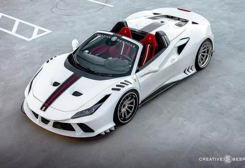 Американская компания Creative Bespoke выпустила агрессивный тюнинг для Ferrari F8. В 2019 году Ferrari представила среднемоторный спорткар F8 Tributo, который стал преемником модели Ferrari 488 GTB. За прошедшие с момента премьера годы автомобиль получил только открытую версию Ferrari F8 Spider, но о заводских лимитированных версиях речи пока не идёт. Поэтому исправить это упущение решили независимые тюнинг-ателье - в частности, Creative Bespoke сделало уникальный родстер. Специалисты из Аризоны подготовили для спорткара масштабную программу доработок внешнего вида, передает Day.Az со ссылкой на Motor. Автомобиль получил углепластиковый аэродинамический обвес, расширяющий кузов. Новый передний бампер с развитым сплиттером, новые пороги, новый задний бампер с массивным диффузором, а также накладки на колёсные арки с множеством воздуховодов придают автомобилю вид гоночного купе категории GT3, но без антикрыла. Внешний вид дополняют разноразмерные - 21 дюйм спереди и 22 дюйма сзади - кол