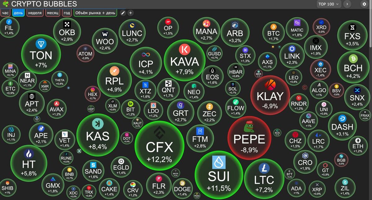 Bitcoin - стоимость 27 294 $, изменение за день +1,7% Ethereum - стоимость 1 826 $, изменение за день +1,6% BNB - стоимость 314 $, изменение за день +0,6% XRP - стоимость 0,430 $, изменение за день +0,9% Polkadot - стоимость 5,39 $, изменение за день +0,3% Капитализация рынка - 1.138 млрд$ Индекс страха и жадности - 50 (нейтрально)
