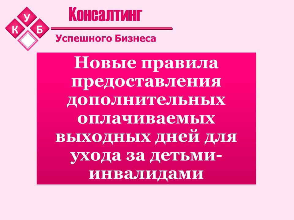 Согласно изменениям, внесенным в ст. 262 ТК РФ у родителей (опекунов, попечителей) появится право однократно в течение года использовать до 24 дополнительных оплачиваемых выходных дней подряд (далее – «каникулы»).