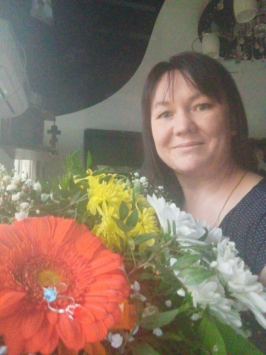 Вчера был мой день. Проснулась позже обычного, мужа рядом нет. Подумала вышел во двор или уже в огороде пашет) Взгляд упал на коробочки с краской для волос и так захотелось воспользоваться ими прямо сейчас. Муж придёт, а я такая с другим цветом волос😁😁😁 Стою волосы свои возюкаю краской, слышу в коридоре шаги и понимаю, что сюрприз не получится. Но ошиблась! Сюрприз получился😁😁😁 Вперёд любимки в дом вошёл букет моих любимых цветов, а затем и он с радостным настроением просочился в дом. Я увидев его в приоткрытую дверь, притихла в ванной комнате и он тоже довольный тем, что ни с кем не встретился на входе, решил припрятать подарки в ванной комнате. Там и встретились🤣 Мне достался букет цветов и миксер, а ему удивление от моего утреннего занятия😁 Приехала старшая доченька, тоже с букетом моих любимых белых хризантем. Я очень ждала её приезда и была ей рада. Младшие доченьки подарили мне свои рисунки и даже монетки из своих копилок. Моей радости не было предела. Во дворе своег