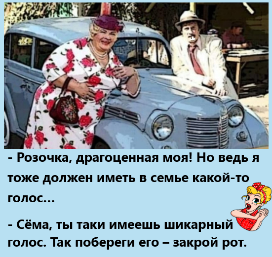 Дорогие мои друзья и читатели, вопрос о том, кто самый главный в семье и чей голос является решающим, относится к разряду вопросов глубочайшей философии. Экзистенциальный, можно сказать, вопрос... Кстати, кто-нибудь знает, что означает слово "экзистенциальный"? А то вдруг это что-то неприличное, а я этого не одобряю в своем блоге. Впрочем, всякие экзистенциальные вопросы в одесских семьях решаются легко и просто - взаимным уважением, терпимостью и любовью. Примерно вот так: Однако же, прежде, чем приобрести главенствующий голос в семье, необходимо этой самой семьей обзавестись: А вот потом, когда любовь и преданность второй половинки уже завоеваны, необходимо приложить максимум усилий, чтобы их сохранить. И даже приумножить: И, заметьте, уважение между супругами также входит в список качеств, необходимых для создания крепкой, любящей семьи Глава одесской семьи всегда балует свою прекрасную слабую половинку разными подарочками, презентами и сюрпризами: А все почему? А все потому, что с