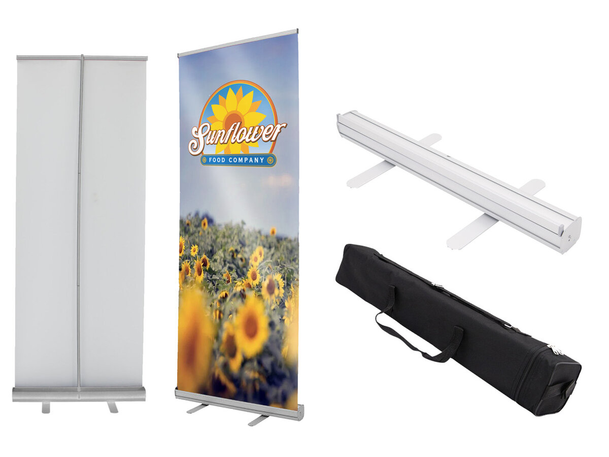 В разобранном состоянии такие стенды очень похожи на несколько никак не связанных между собой металлических планок, зато они занимают меньше места и весят почти в два раза меньше ролл-апов. Полностью готовый к выставке ролл-ап в среднем весит от 2 кг, в то время как баннерные стенды в зависимости от своих размеров и материалов еле-еле дотягивают до 0,9-1,2 кг.