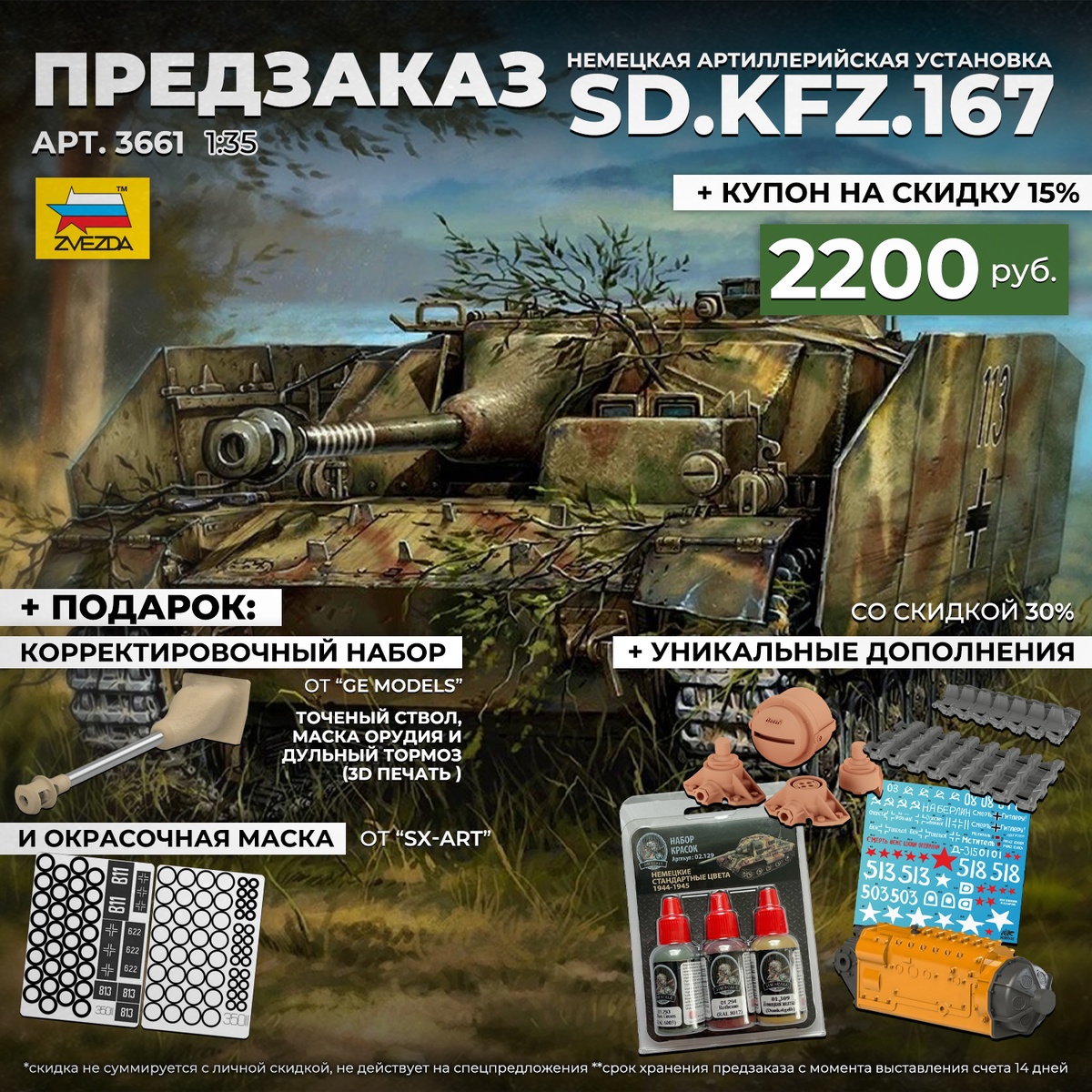 Всем привет! Пару дней назад открылся предзаказ у магазинов Ямоделист и Арма Моделс. Думаю есть еще и другие магазины, но это самые популярные😀 И так Штуг, Штюг, Ютуг. Как его только не называются. Набор от Звезды в 35 масштабе. Артикул 3661. Т.к. больше акцент будет на быстрый обзор, рассмотрим базовый набор С допами. Платные допы - пару слов с картинками. Ямоделист Ссылка на предзаказ. Что имеем с коробкой: Платные допы Как и с многими другими наборами, допы частично классические: Наборные траки на 3д принтере, разные мелкие улучшения (фара Бошь), декали, краска. Из того что интересно : Для копийности, или даже для модели подбитой технике, где открыто трансмиссионное отделение самое то. Фара интересна своей ценой - 80р (без учета скидки). Перейдем к Арме. Арма Моделс Ссылка на предзаказ С коробкой: У кого есть карта: Платные допы Тоже есть, наборные траки распечатанные на 3д принтере, миниатюры, снаряды, бочки, канистры и прочее. Из интересного, танковый донкрат. Прошелся чис