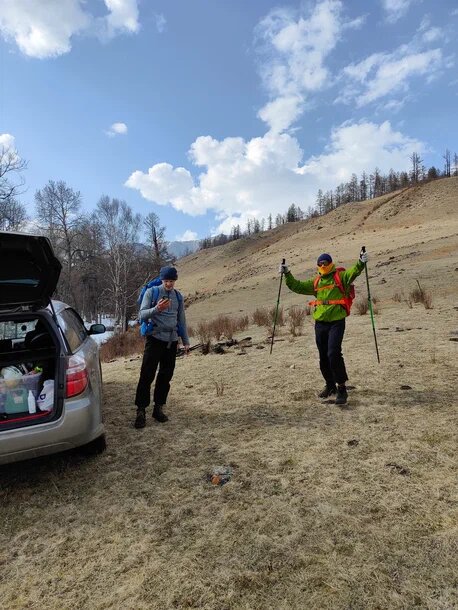 В этом году удалось выбраться из города только 8 мая. Выехали мы около полудня с Иркутска и к 6 часам были в гостинице в поселке Монды (поселок в приграничной зоне с Монголией). За ужином в кафе за соседним столом мы заметили пару загорелых, я бы даже сказал красных как раки, мужчин. Они лениво сидели вытянув ноги и неспешно о чем-то говорили... Мы сразу поняли с какой вершины они вернулись и спросили их про восхождение. Оказалось, что последнее время стояли очень теплые дни и река Белый Иркут, по которой начинается маршрут, сильно тает, поэтому без резиновых сапог не обойтись. К такому повороту событий мы не были готовы и думали, куда же нам направиться вместо запланированной вершины... Заселившись в комнату для ночевки, мы познакомились с нашими соседями, которые подсказали, что есть еще интересные горы, при восхождении на которые, мы можем сохранить ноги сухими.