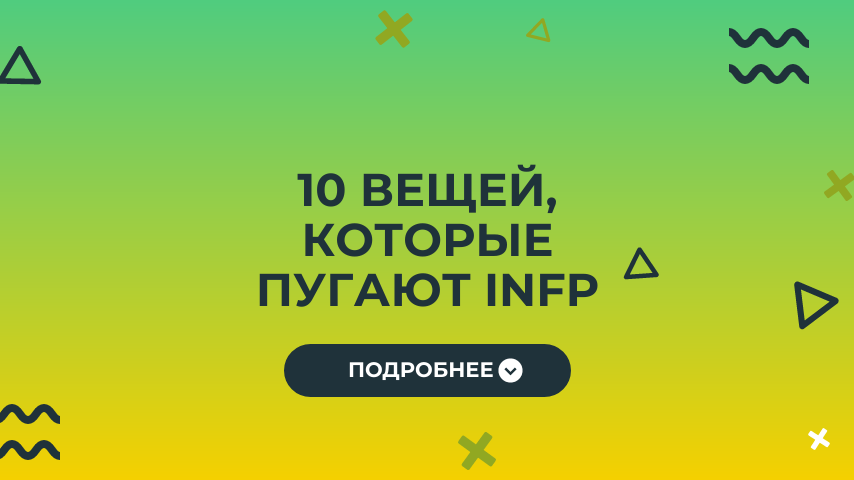 INFP — тип личности, пользующийся Интровертным Чувством (Fi) и Экстравертной Интуицией (Ne) больше всего. 1. Не соответствовать своим идеалам INFP часто называют идеалистами, и нетрудно понять почему. Они имеют очень высокие стандарты для себя и опираются на сильный внутренний набор ценностей. Их внутренний моральный компас очень силён благодаря доминирующему интровертированному чувству (Fi). Они также верят в то, что всё, что они делают, имеет смысл и цель. Многие INFP упоминали о страхе дожить до конца жизни и осознать, что они растратили свой потенциал или не сделали ничего значительного, чтобы сделать мир лучше. 2. Отвержение INFP — очень сильные интроверты, но к отношениям, которые у них есть, они относятся очень серьёзно. Они образуют прочные эмоциональные связи с теми, кого любят, и очень щедры в поддержке, которой они делятся с теми, кто им дорог. Дружба у INFP очень глубокая, и они предпочитают иметь несколько очень близких друзей, а не широкий круг знакомых. То значение, ко