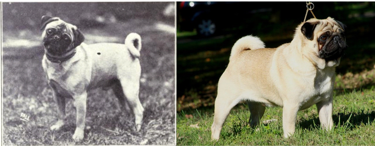 1. Мопсы со временем не претерпели изменений в размере, однако изменились в костяке. Их лапы стали короче, а морда еще более плоской. 2. А вот красавица шелти изменилась в корне: от строения тела до более пушистой шерсти и выражения мордочки. 3. Бультерьер изначально был подтянутым псом с пропорциональной головой и более стройным туловищем. 4. Известно, что ранее вес породистых чау-чау не превышал 22 кг, во время селективног