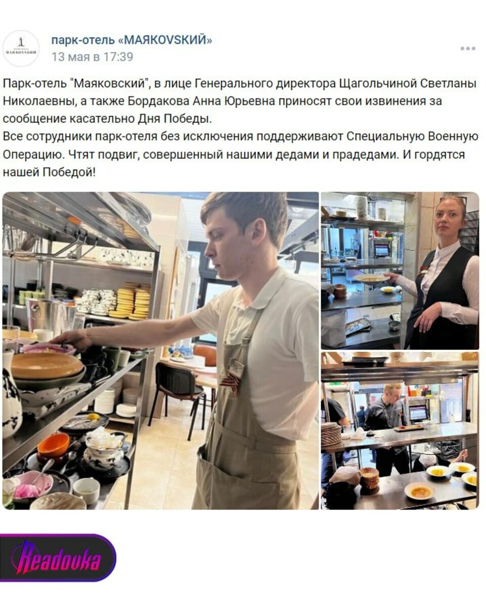 Оно пообещало уволить виновных. Администрация отеля «Маяковский» в Калининграде, отказавшаяся праздновать 9 мая на территории гостиницы, принесла извинения «за сообщение касательно Дня Победы ». Депутат Госдумы Александр Хинштейн поговорил с собственником отеля. Владелец пообещал уволить провинившихся сотрудников. По словам Хинштейна, в ситуации разбирается и губернатор региона Антон Алиханов. Напомним, что аналогичная история произошла в Краснодарского края, где в двух отелях «Мариотт» и «Риксос» постояльцам также запретили размещать праздничную символику и отмечать «День победы», до сих пор остается без должного внимания ответственных лиц. Там руководство отелей ссылалось на запрет администрации самой Красной поляны. Единственный комментарий по поводу ситуации дала мэрия Сочи, заявившая, что проводит проверку в связи отсутствием «подготовки к 9 мая». Информацию о том, что запрет якобы исходил от администрации курорта не прокомментировали. Ранее Readovka писала о том, что в Берлине по