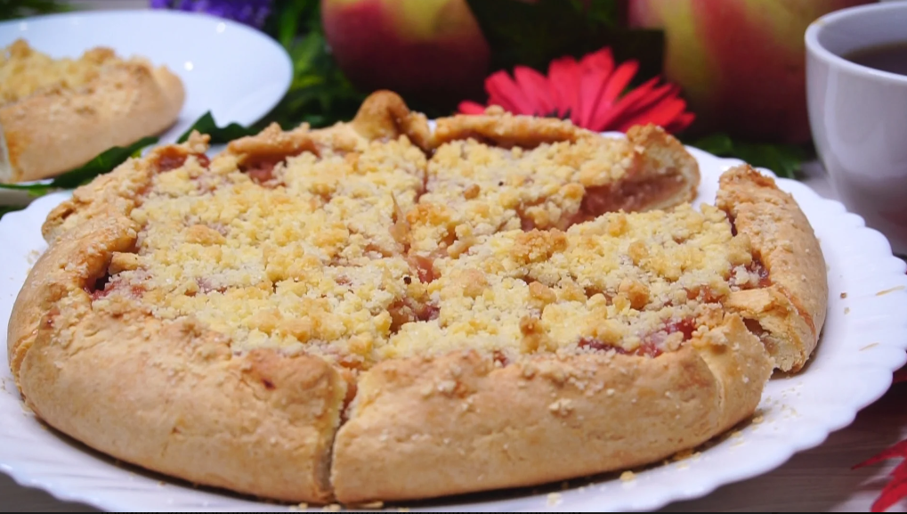 ✅ Дежурный пирог к чаю! Просто, быстро, сочно и конечно же вкусно!Яблочная галета с крошкой. (Яблочный пирог) В нем много сочной начинки, которая прекрасно сочетается с хрустящим и рассыпчатым песочным тестом. Этот пирог у меня дежурный, часто его готовлю и всегда съедается. Удобный вариант к чаю на все случаи жизни. Рецепт: Мука – 250 гр. Сахарная пудра – 30 гр. Сливочное масло – 120 гр. Яйцо – 1 шт. Вода ледяная – 2 ст.л. Соль – 1/4 ч.л. Для крошки: Сливочное масло – 30 гр. Мука – 30 гр. Сахар – 30 гр. Для начинки: Яблоки – 4-5 шт. Сахар – 1-3 ст.л. Крахмал – 1/2 ч.л. СПОСОБ ПРИГОТОВЛЕНИЯ В миску просеиваем 270 гр муки. Добавляем 120 грамм сливочного масла охлаждённого, прямо из холодильника. Кладем щепотку соли. Растираем масло с мукой в крошку. Разбиваем 1 яйцо, добавляем 30 гр сахарной пудры. Сначала наливаем 1 ст.л. охлаждённой воды из холодильника. И перемешиваем, если воды мало нужно добивать еще 1 ст.л. Замешиваем быстро тесто и убираем в холодильник на 30 минут. Можно делат