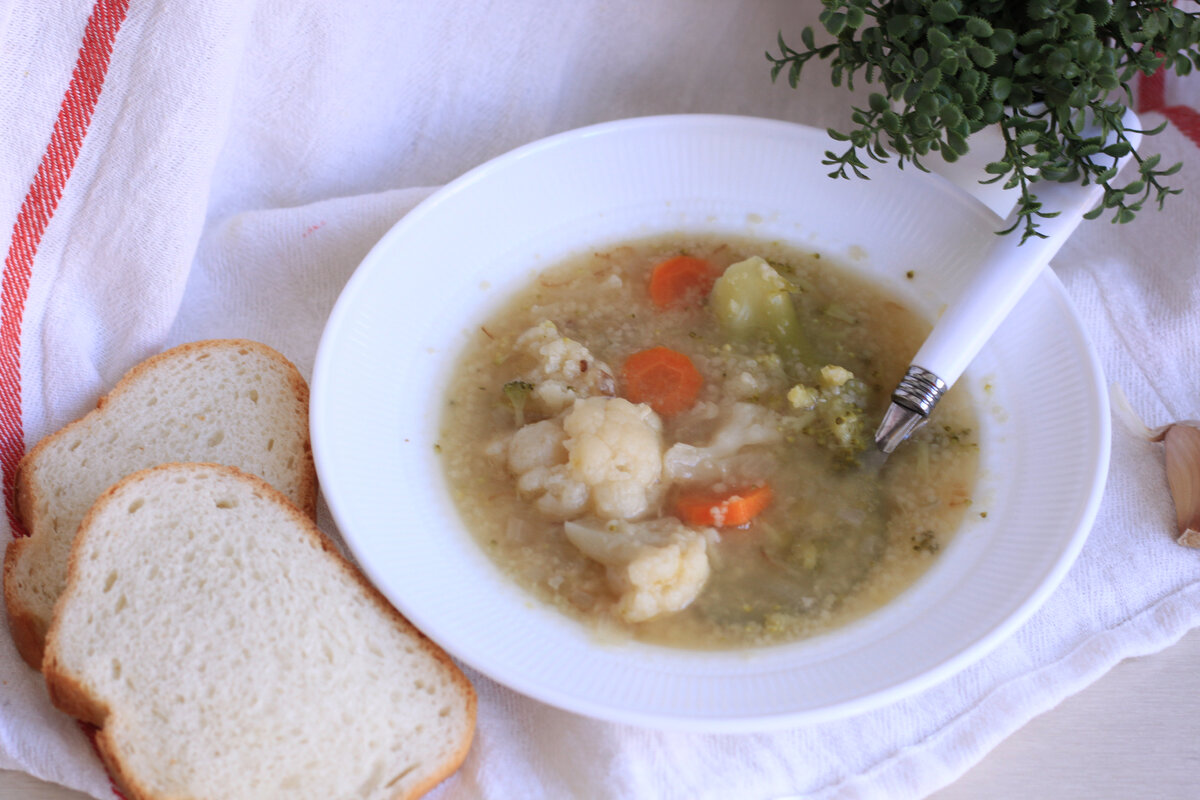 Добавить обжаренные овощи, кускус, посолить и поперчить по вкусу. Варить еще около 10 минут. Ингредиенты: Вода - 3 литра