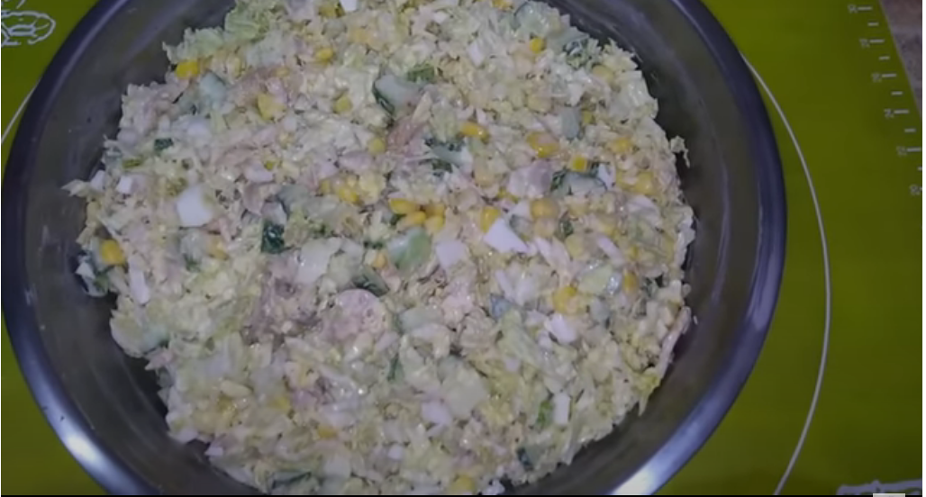 Сытный и в то же время легкий салат понравится всем, и можно его всем, кто на какой-либо диете. Даже на праздничный стол он подойдет и будет очень кстати, гости непременно удивятся нежному и сочному вкусу. Приготовим! Ингредиенты: Для салата: 1) Пекинская капуста, мелко нарезанная - 300 г 2) Огурцы свежие, нарезанные кубиком - 300 г 3) Мясо куриных бедер, отваренное в подсоленной воде и порезанное произвольно - 450 г 4) Кукуруза консервированная - 1 банка 5) Соль - по вкусу Для заправки: 1) Сметана малой жирности - 100 г 2) Горчица - 1.5 чайных ложек Приготовление: 1) В салатнике смешайте все ингредиенты. 2) Сметану смешать с горчицей. 3) Заправить салат заправкой, подсолить и можно подавать к столу. Приятного аппетита!