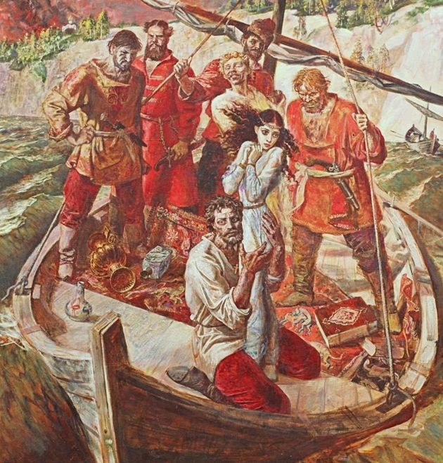 В летний день 1669 года храбрый казак Стенька Разин разбил персидское войско у острова Свиней в Каспийском море. Он захватил в плен сына и дочь персидского главнокомандующего Мамед-хана и якобы сделал принцессу своей любовницей. Однако неясно, была ли эта персидская принцесса на самом деле красивой и вообще существовала ли, поскольку имена персидских дочерей часто не записывались. Некоторые историки считают, что история о принцессе, брошенной Разиным в реку, - это просто приукрашивание его врагов, чтобы он казался более жестоким. Тем не менее, жизнь Разина закончилась трагически — он был расстрелян и четвертован в Москве. Тем не менее, его помнили как народного героя на протяжении веков.