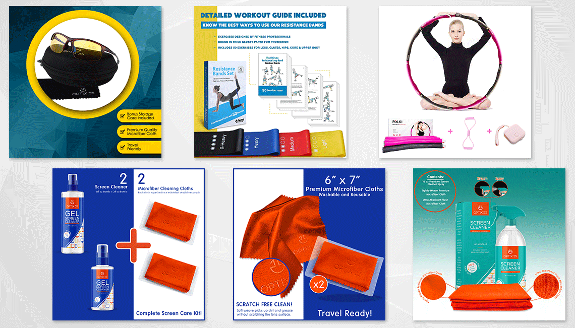 Четко обозначьте все товары, которые покупатели получат вместе с покупкой. Изображение «пакет включает в себя» — отличный способ выделить бонусы, которые клиенты получат вместе с продуктом. Например, инструменты для сборки, сумки для переноски и т. д.