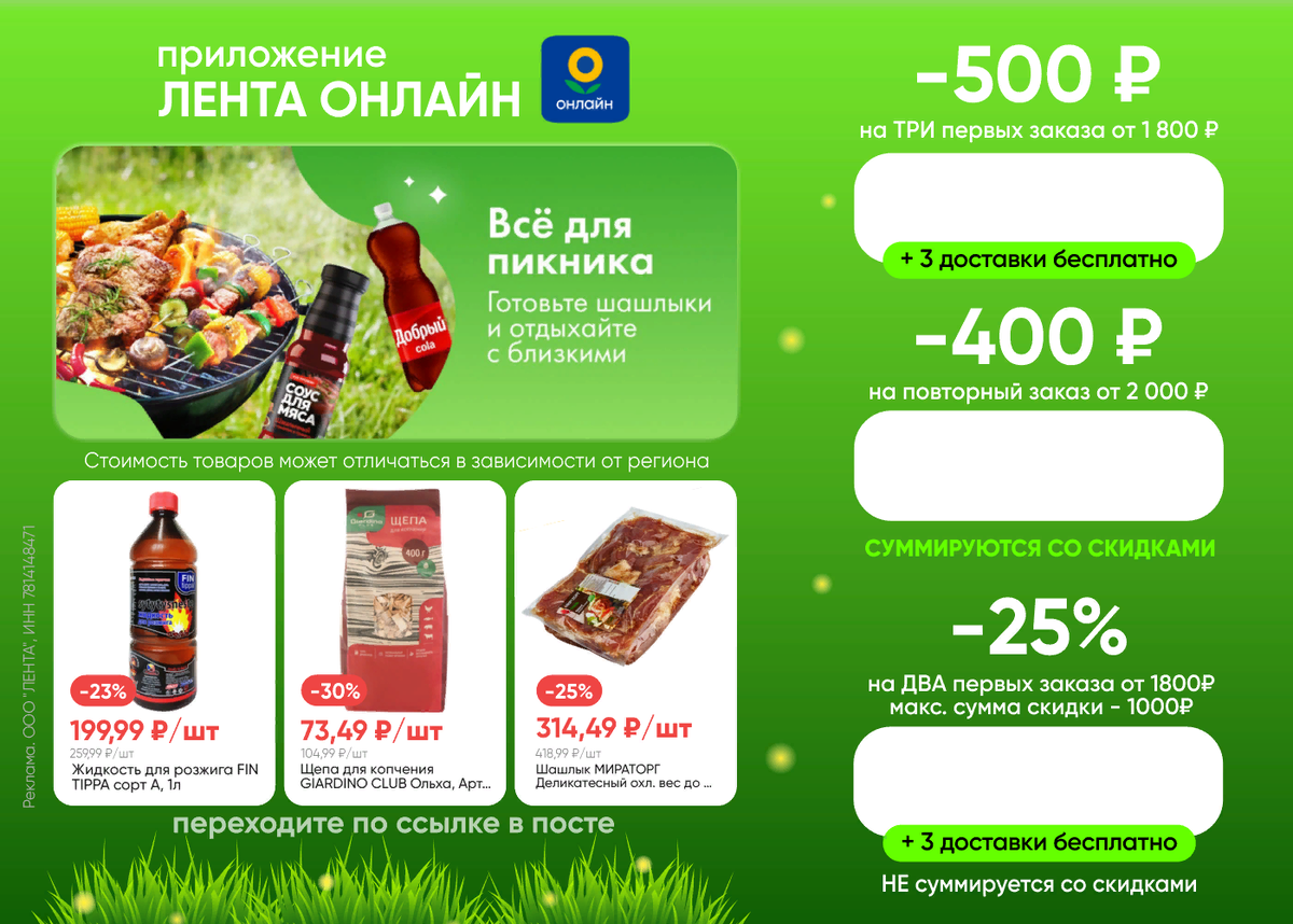Летом не хочется лишний раз появляться в публичных местах. Летом хочется понежиться, где нибудь в комфортной зоне отдыха, на крайний случай на даче, у кого то в основном на даче. А если дача рядом с водоемом - это вообще мега кайф! Но! Домашние обязанности по готовке, уборке (летом приходится делать чаще, так как окна открыты) никто не отменял. Вот вы приехали после отдыха в зонк комфорта домой, а продуктов "тю-тю", в магазин идти не хочется, ну вообще никак. Кто выручит? Доставка суши - это банально, да и на один раз. Нужно что то по серьезнее. И вот - ТА ДА! Доставка продуктов на дом, из большого супермаркета - ЛЕНТА. Лента Онлайн предлагает широкий ассортимент товаров и доставку с удобными временными интервалами в большинство городов России.