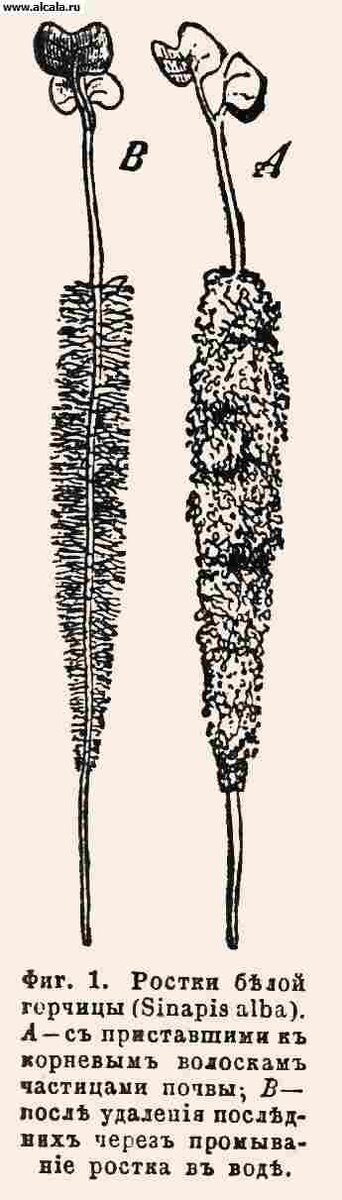 Ну вот на картинке вид росточка белой горчицы. Ну да, того самого сидерата, который вовсю продаётся в магазинах семян. Снимок из давно забытого словаря Брокгауза и Ефрона.